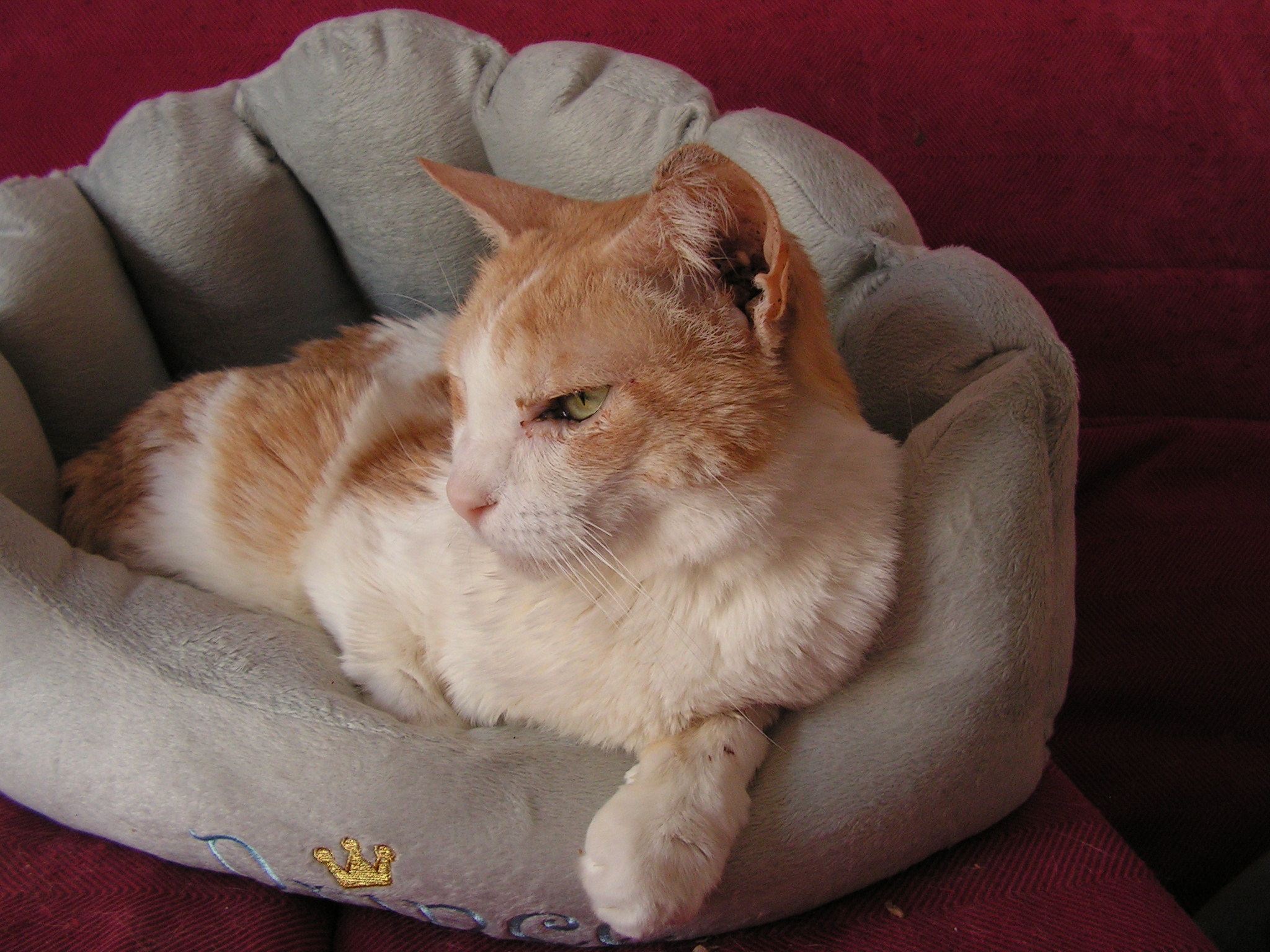 Als eher zurückhaltend beschrieben, hat er sich bei mir schnell zu einem sehr anhänglichen Tier und Kampfschmuser mit großer Schnurrfreude entwickelt. Er ging freundlich auf alle Gäste zu und war auch verträglich mit meinen anderen Katzen (alle ebenfalls aus dem Tierschutz, wenn auch aus Griechenland). Immer hoffte er auf Streicheleinheiten oder ersatzweise Leckerli und schlief fast jede Nacht bei mir im Bett.