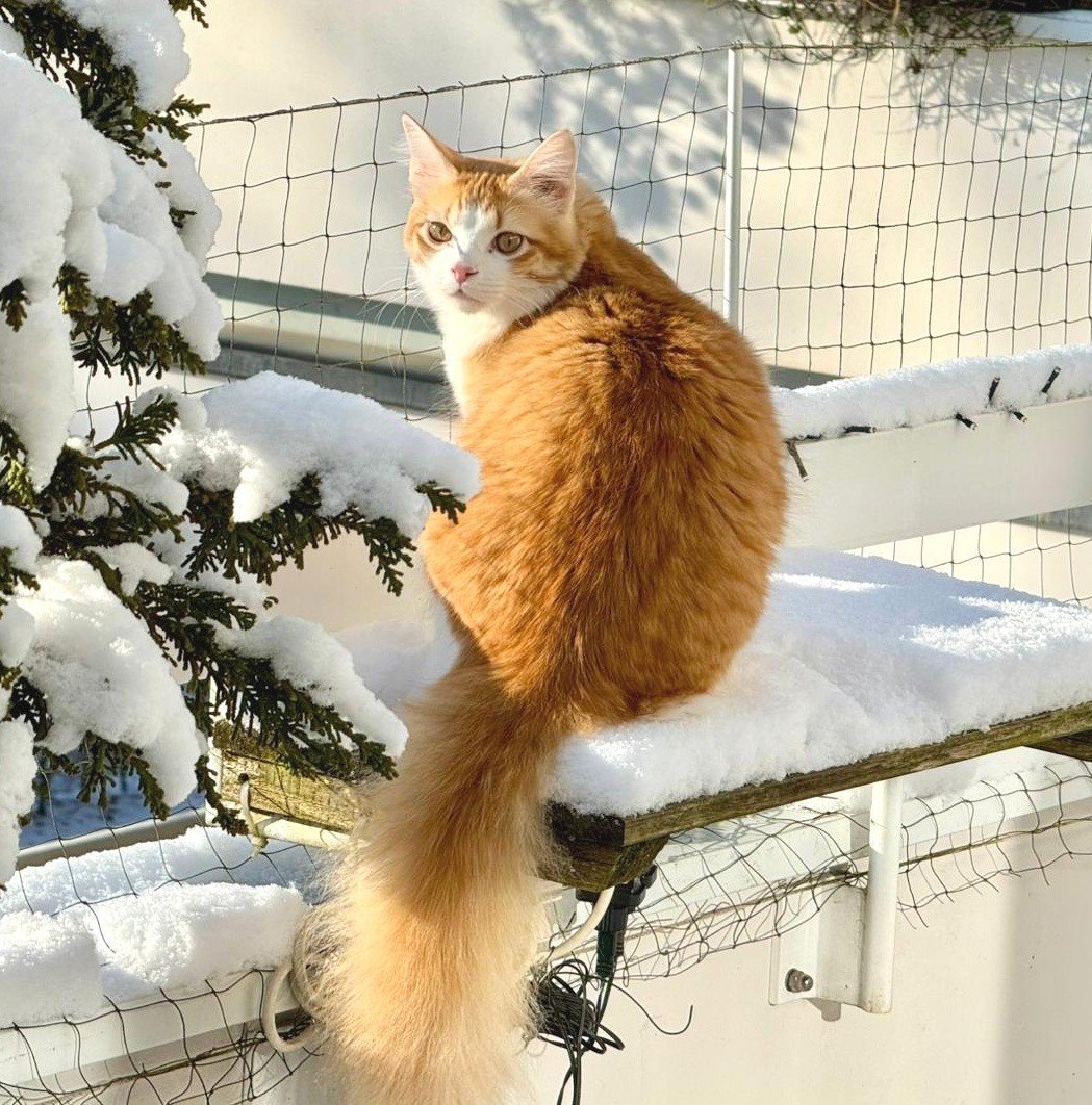 Da wir so zutraulich sind, möchte unsere Pflegemama nicht, dass wir in den Freigang kommen. Aber ein großer vernetzter Balkon oder noch besser ein vernetzter Garten wäre toll, da wir gerne draußen sind und jetzt im Herbst die Blätter jagen, das macht großen Spaß.