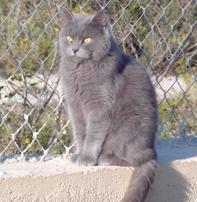 in Spanien - Katze, Karthäusertyp, ca. 3 Jahre alt, sehr ruhig und schmusig, nur Wohnung, kann zu anderen Katzen, kann aber auch einzeln sein.