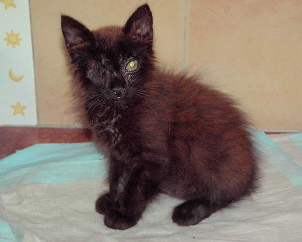 Süßer Kater, ca. 20.4.2009 geboren. Die Chancen stehen gut, dass das Auge mit Medikamenten wieder ganz ausheilt.