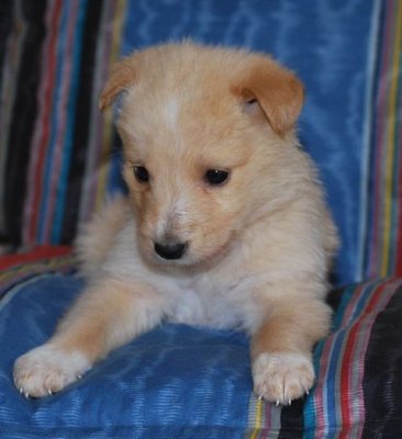 Diese vier kleinen Welpen wurden gerade noch rechtzeitig aus einem Müllcontainer gerettet. Sie sind Mitte fünfte Woche alt, denn die Backenzähne kommen durch. Sie fressen und fressen. Es scheinen kleine Ausführungen zu sein; sie sind winzig und sehr hübsch. Es sind drei Buben und ein Mädchen. Alle haben Ruten, keiner ist ohne geboren, und das Unterfell ist extrem dick; sie haben keine Wolfskrallen. Überhaupt sind sie sehr zutraulich.