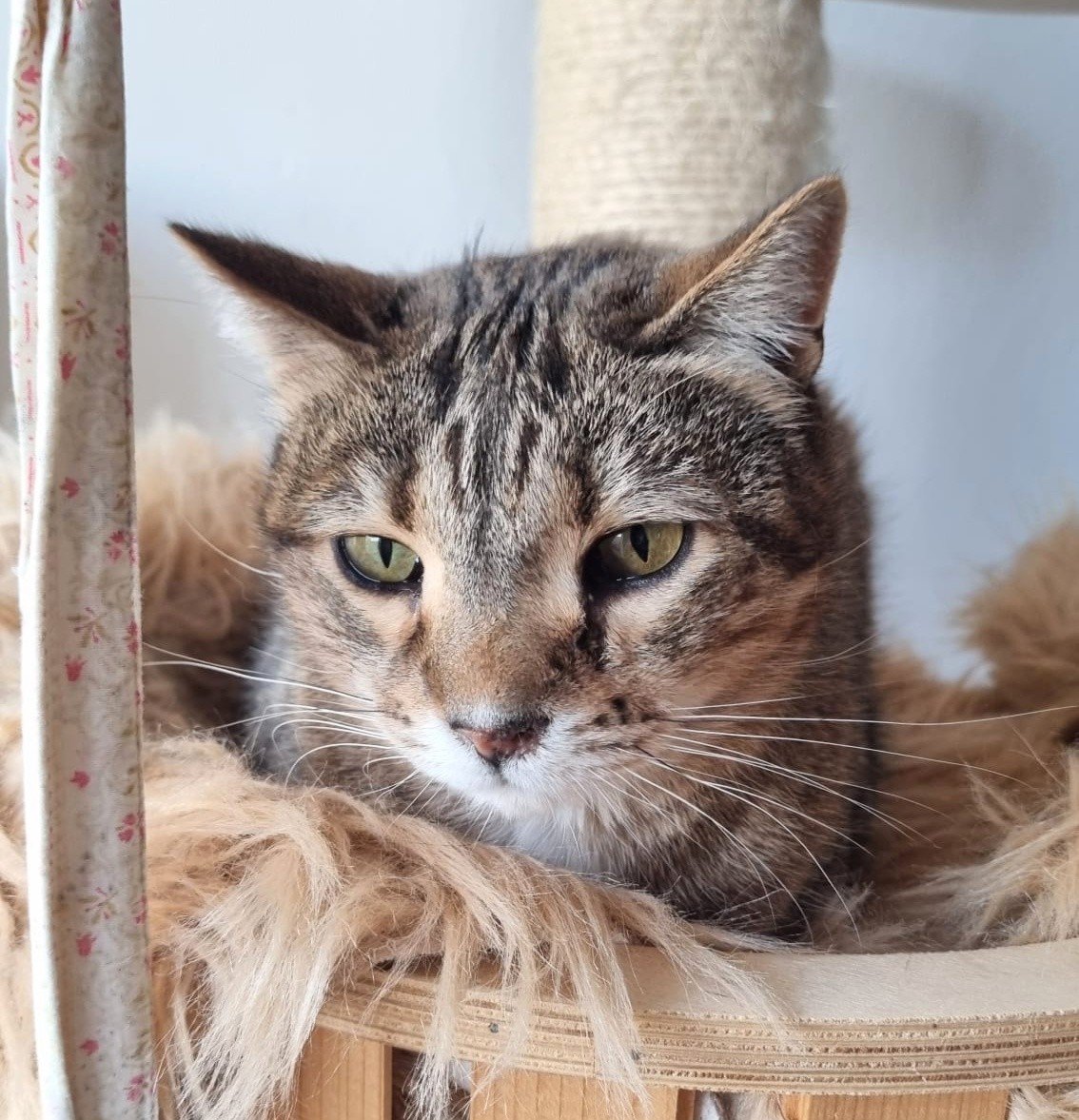 Darf ich mich vorstellen? Ich bin Petra, eine ruhige und sanfte Katze, die immer ein bisschen übersehen wird, wenn jemand das Tierheim besucht. Dabei habe ich so viel zu geben und wünsche mir nichts sehnlicher, als endlich ein Zuhause zu finden, in dem ich geliebt und umsorgt werde.