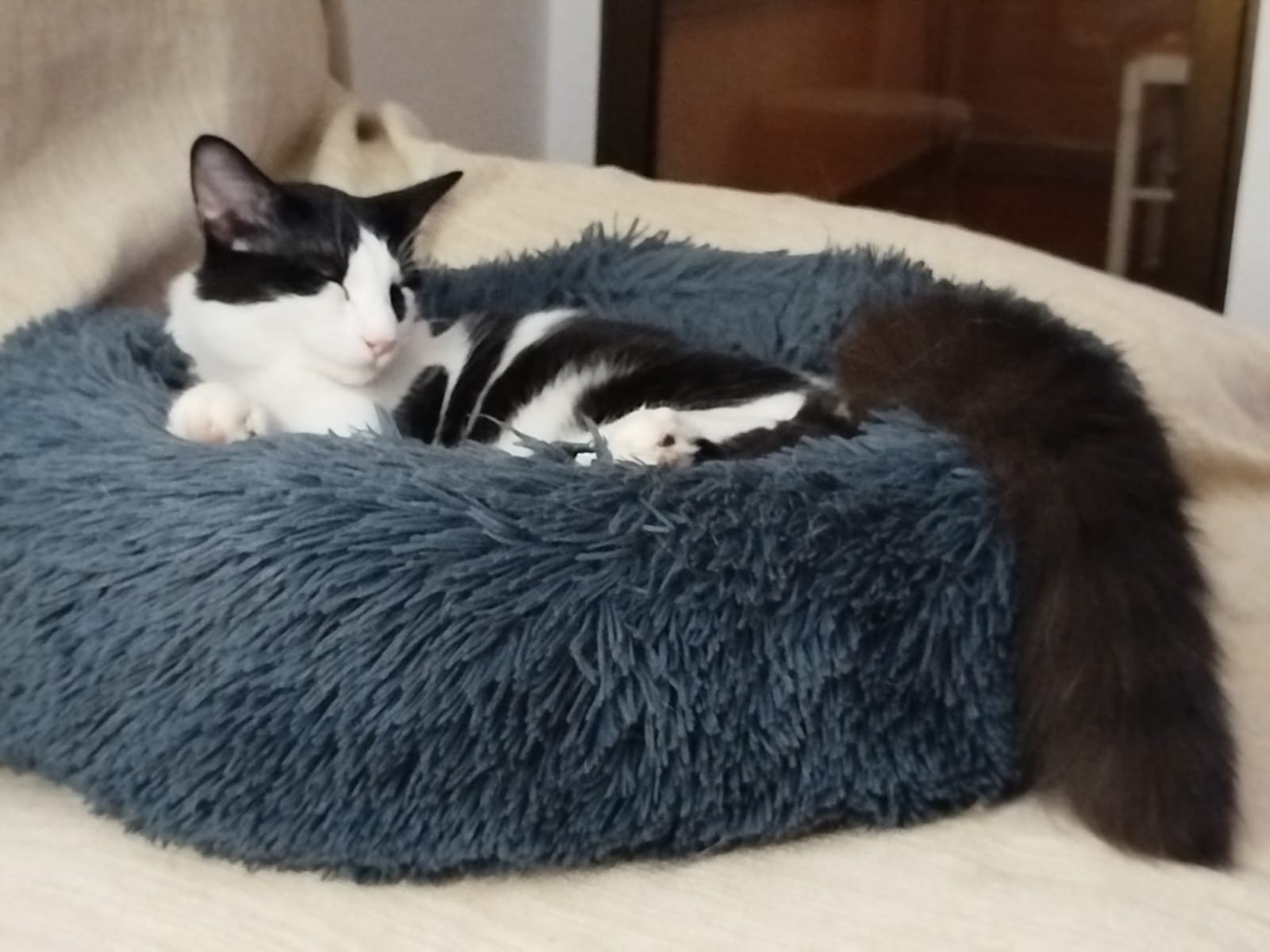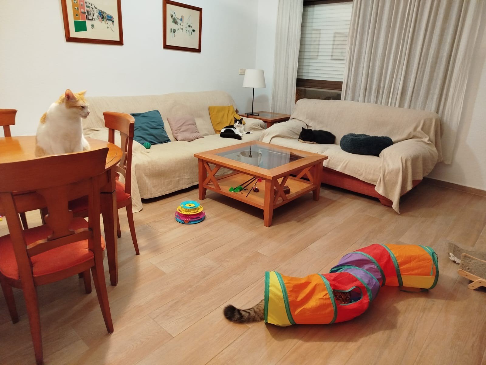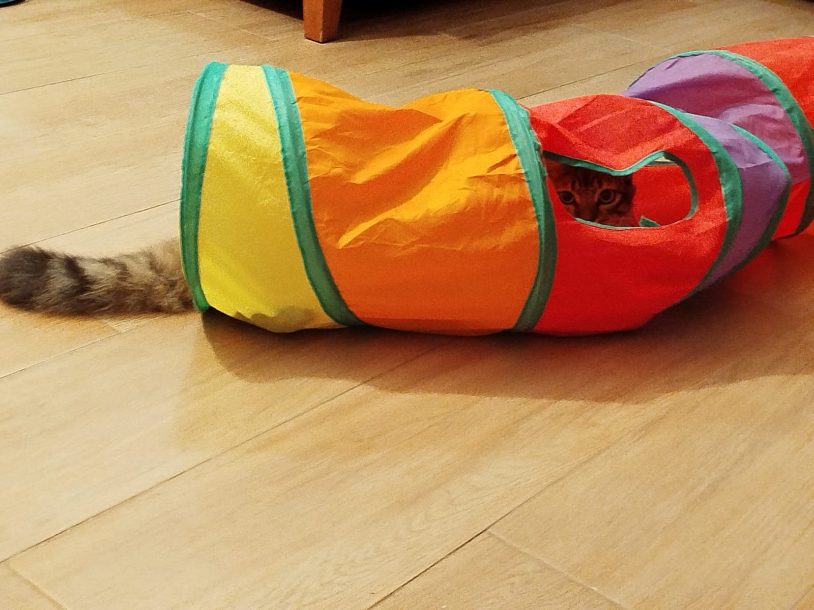 Unsere Mama suchte Zuflucht in der Nähe des Tierheims, um dort ihre Babys in Sicherheit zur Welt zu bringen. Piruleta wurde zuerst im Tierheim aufgenommen und gewöhnte sich nach drei Tagen an die neuen Eindrücke. Als Elis kurz darauf kam, fiel es ihm anfangs etwas schwerer. Doch jetzt geben wir uns gegenseitig Halt und fühlen uns beide wieder mutiger.