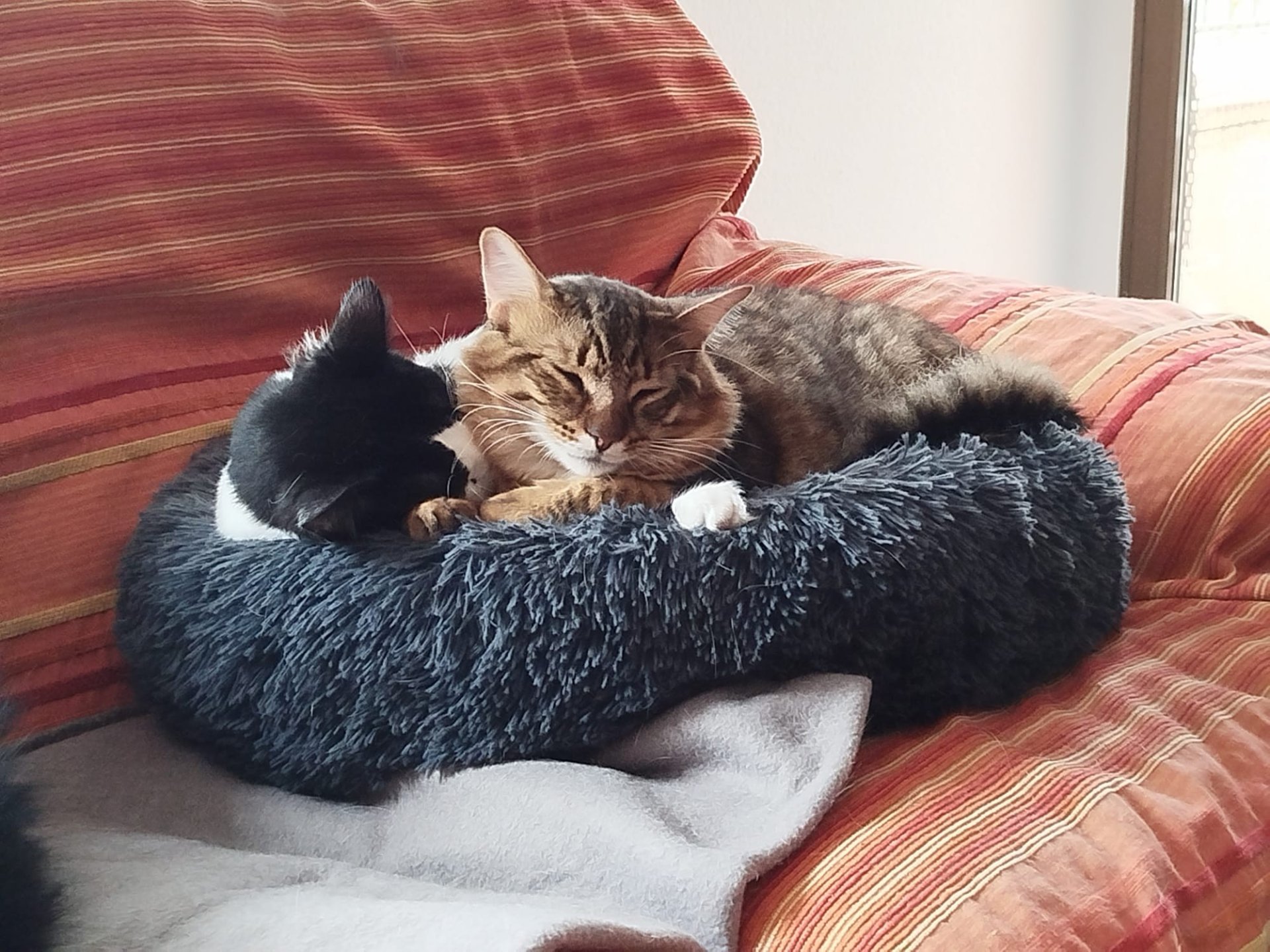 Wir verstehen uns auch mit anderen Katzen und sogar mit Hunden.