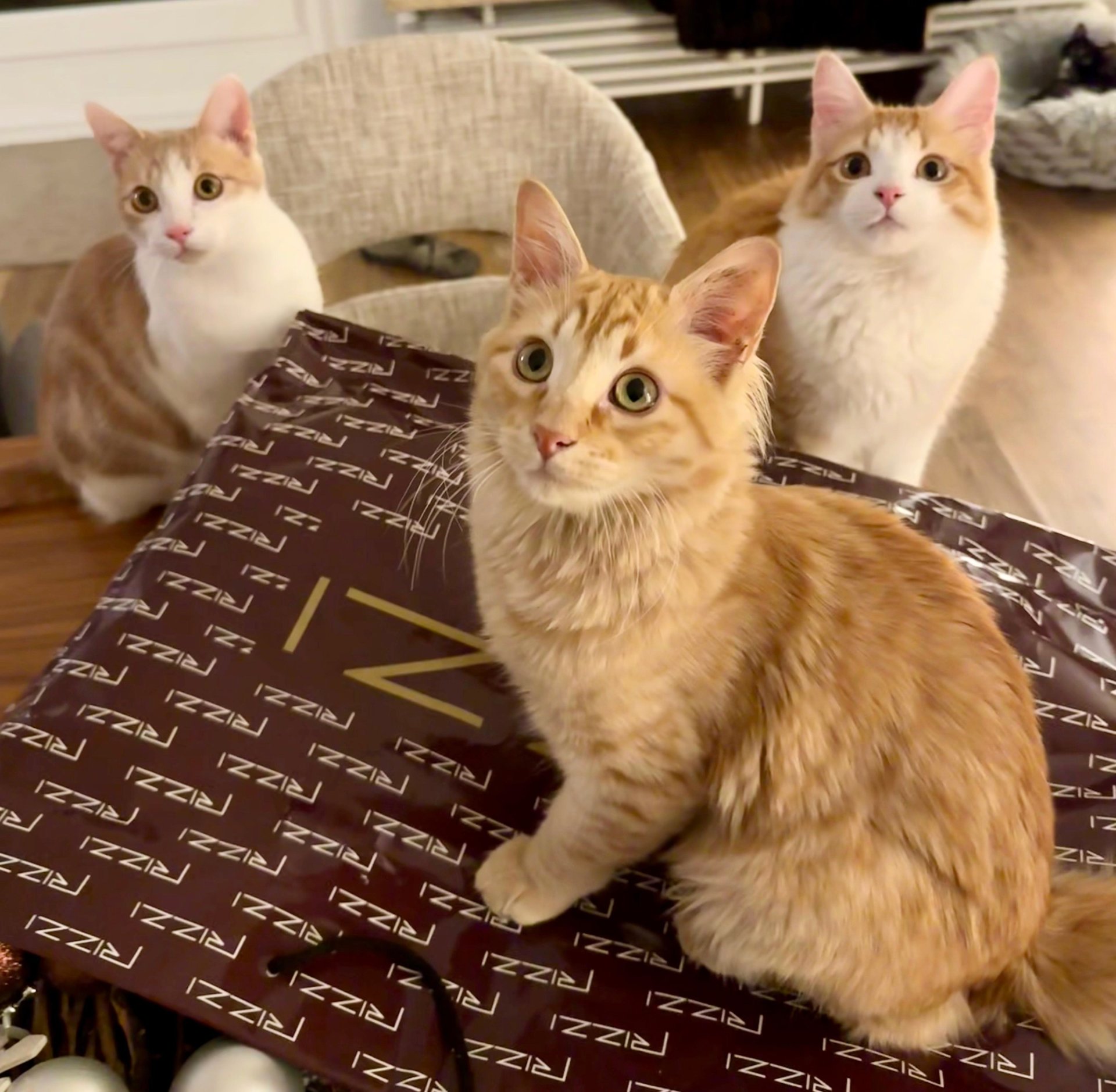 Hier ist Golden, ich bin anfangs etwas vorsichtiger als Clarence und Teddy und Besuch wird erst einmal beobachtet. Aber dann komme ich auch dazu, ich bin neugierig und voller Entdeckerdrang. Ich kann von uns 3 am lautesten schnurren und wenn ich auf den Kratzbaum flitze oder irgendwo runter springe, mache ich mich bemerkbar mit lustigen Quietschtönen. Ich lasse mich gerne auf dem Arm tragen und kuschele auch sehr gerne mit meinen Menschen. Morgens komme ich ins Bett und wecke die Menschen mit liebevollen Stupsern, damit die nicht den ganzen Tag verschlafen.