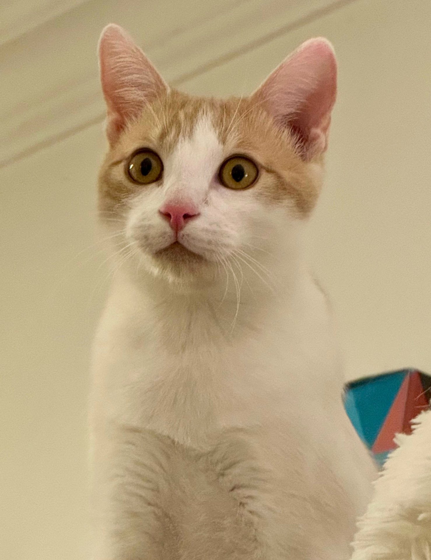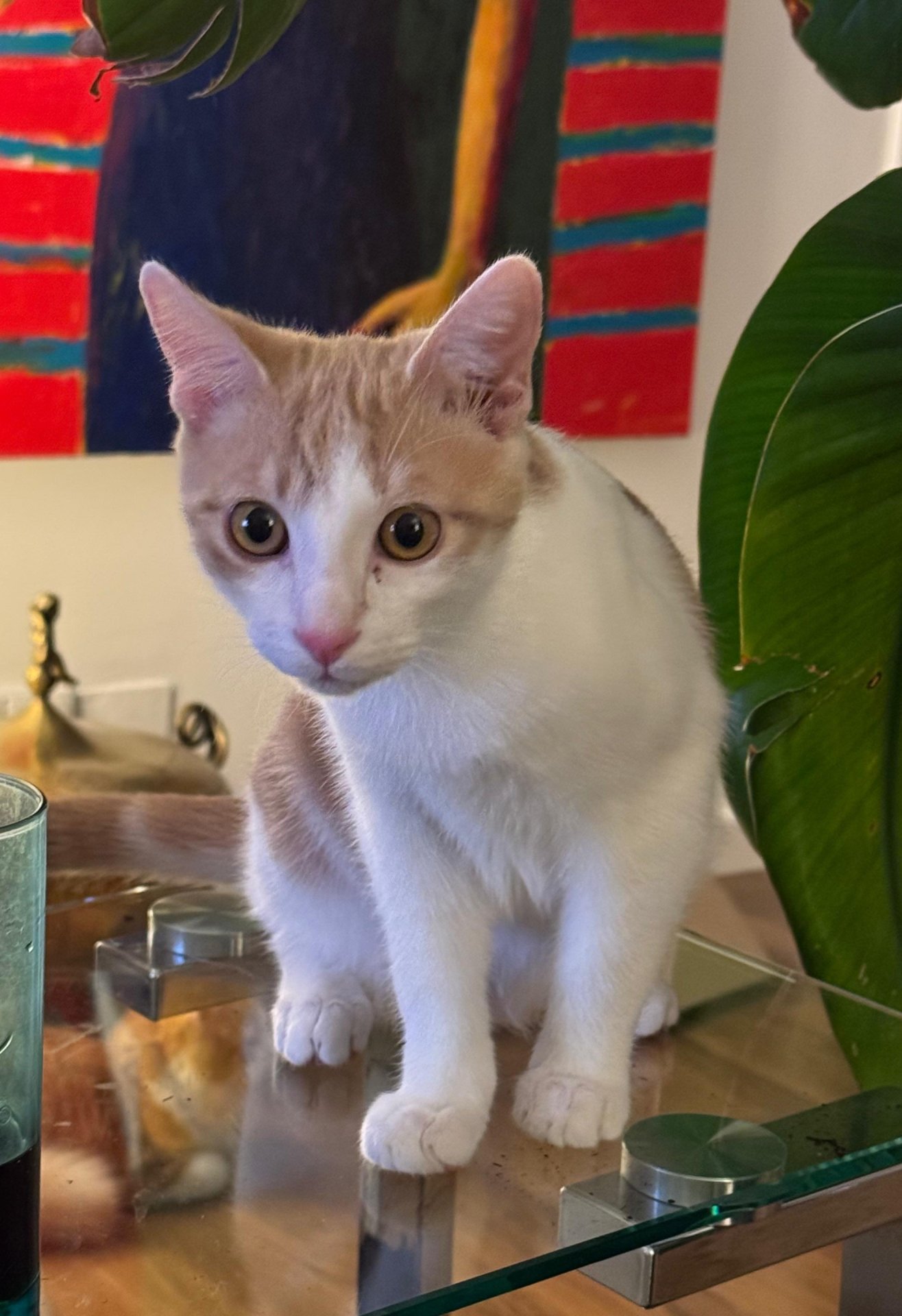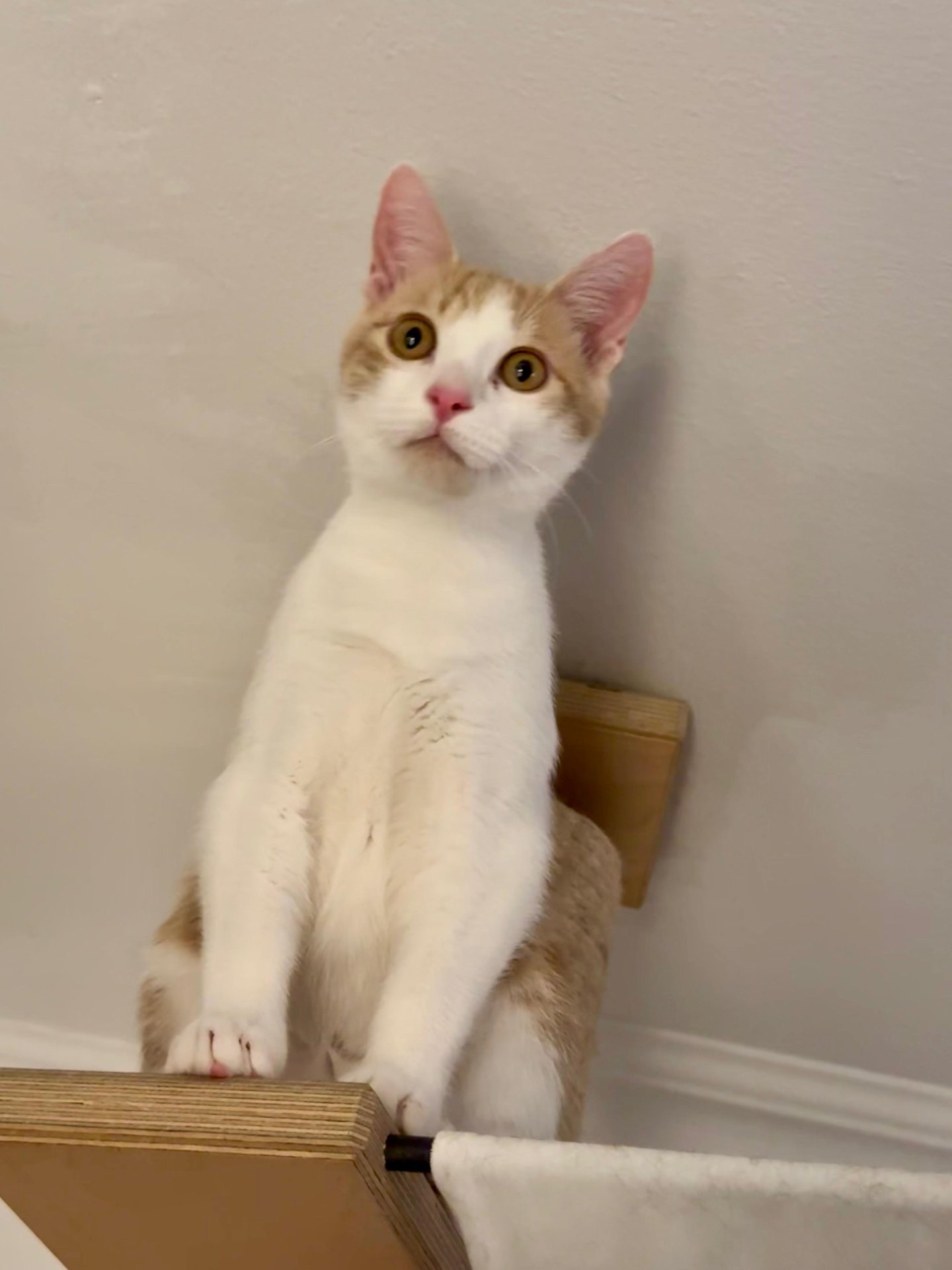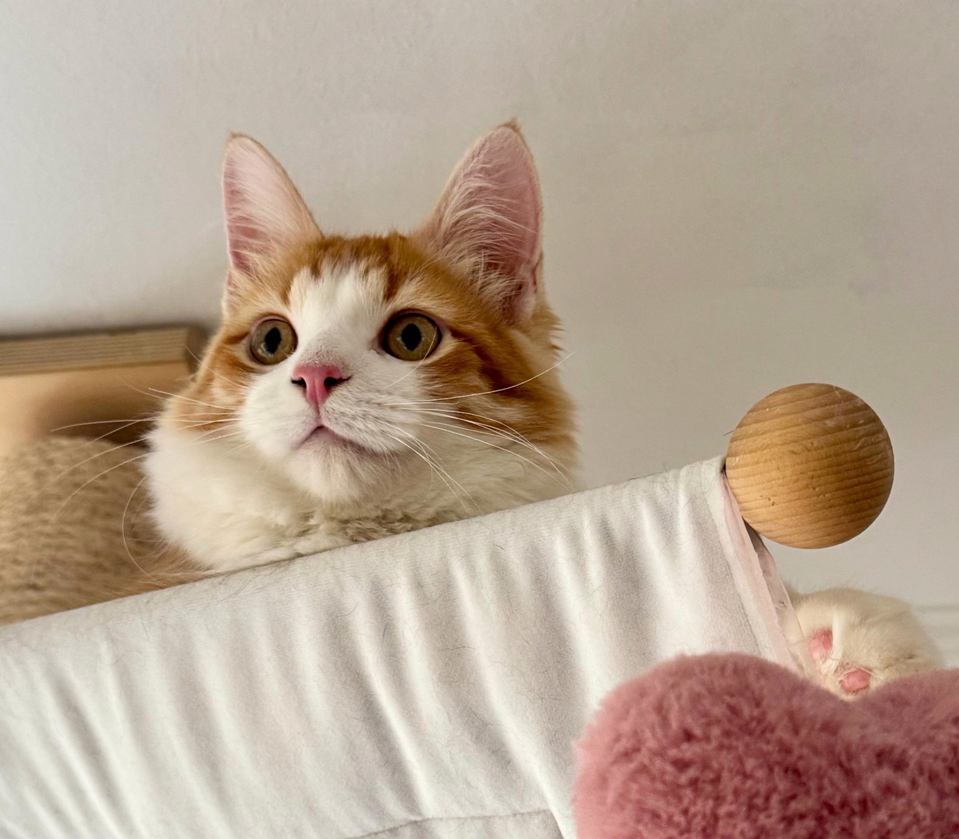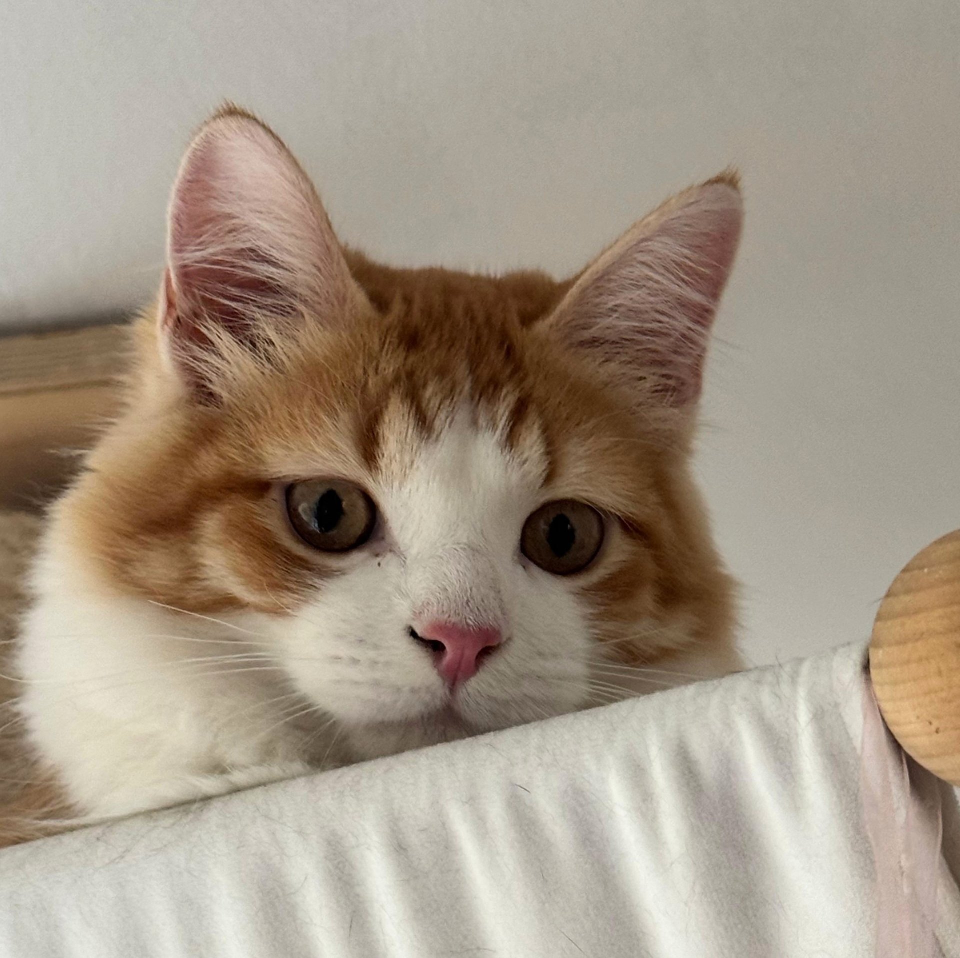 Hier ist Golden, ich bin anfangs etwas vorsichtiger als Clarence und Teddy und Besuch wird erst einmal beobachtet. Aber dann komme ich auch dazu, ich bin neugierig und voller Entdeckerdrang. Ich kann von uns 3 am lautesten schnurren und wenn ich auf den Kratzbaum flitze oder irgendwo runter springe, mache ich mich bemerkbar mit lustigen Quietschtönen. Ich lasse mich gerne auf dem Arm tragen und kuschele auch sehr gerne mit meinen Menschen. Morgens komme ich ins Bett und wecke die Menschen mit liebevollen Stupsern, damit die nicht den ganzen Tag verschlafen.