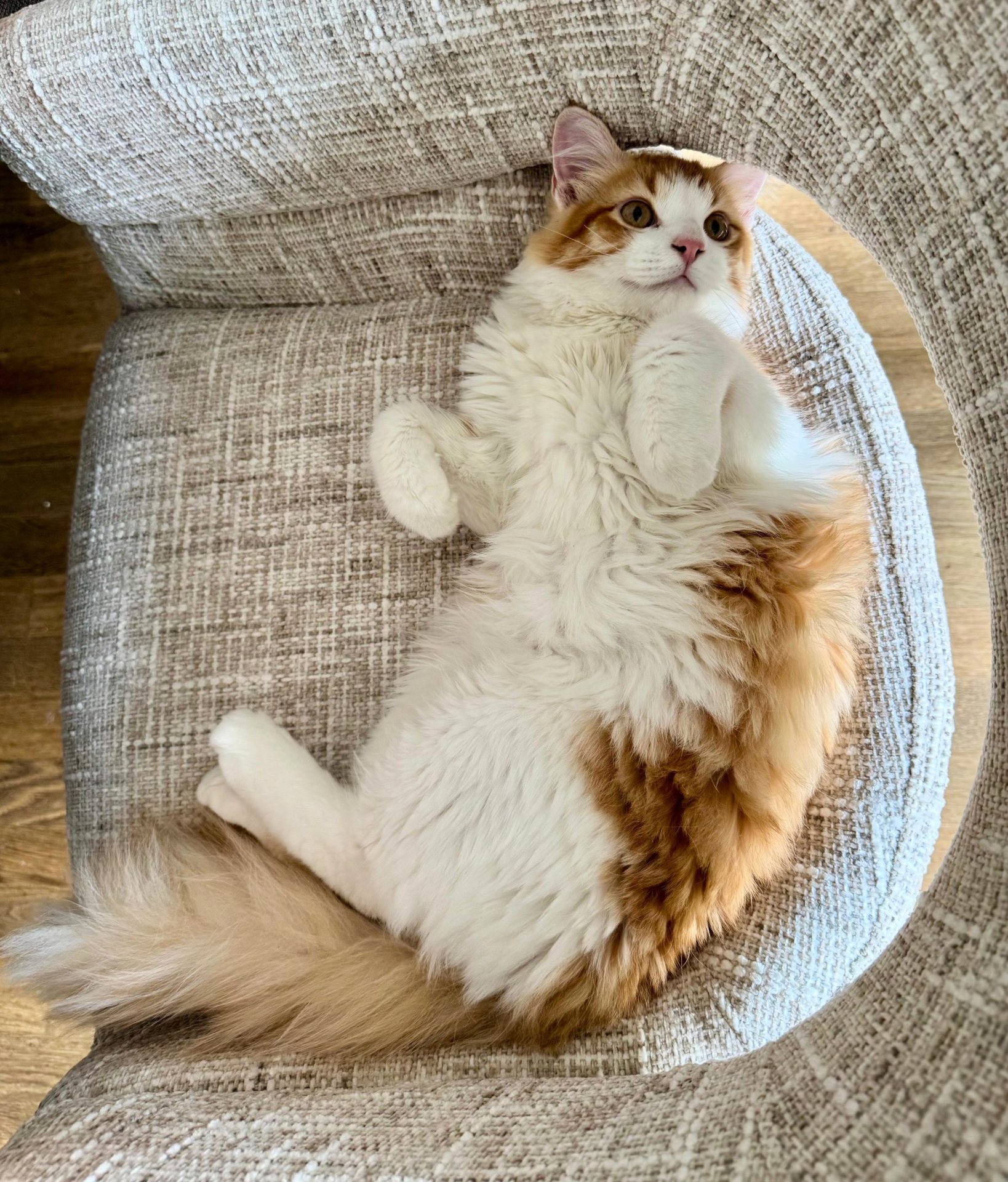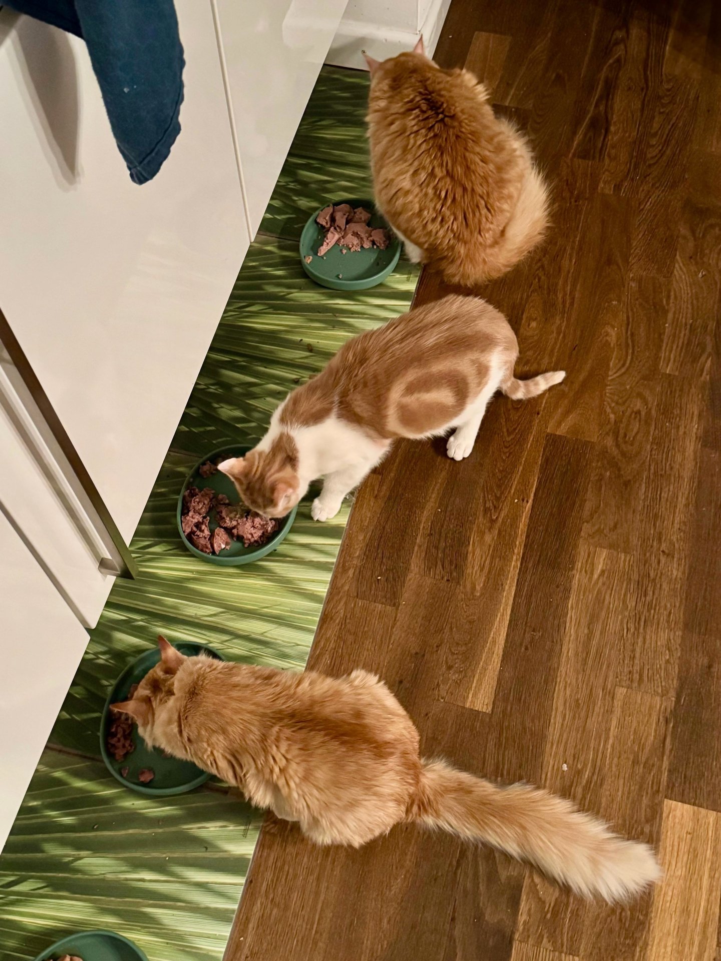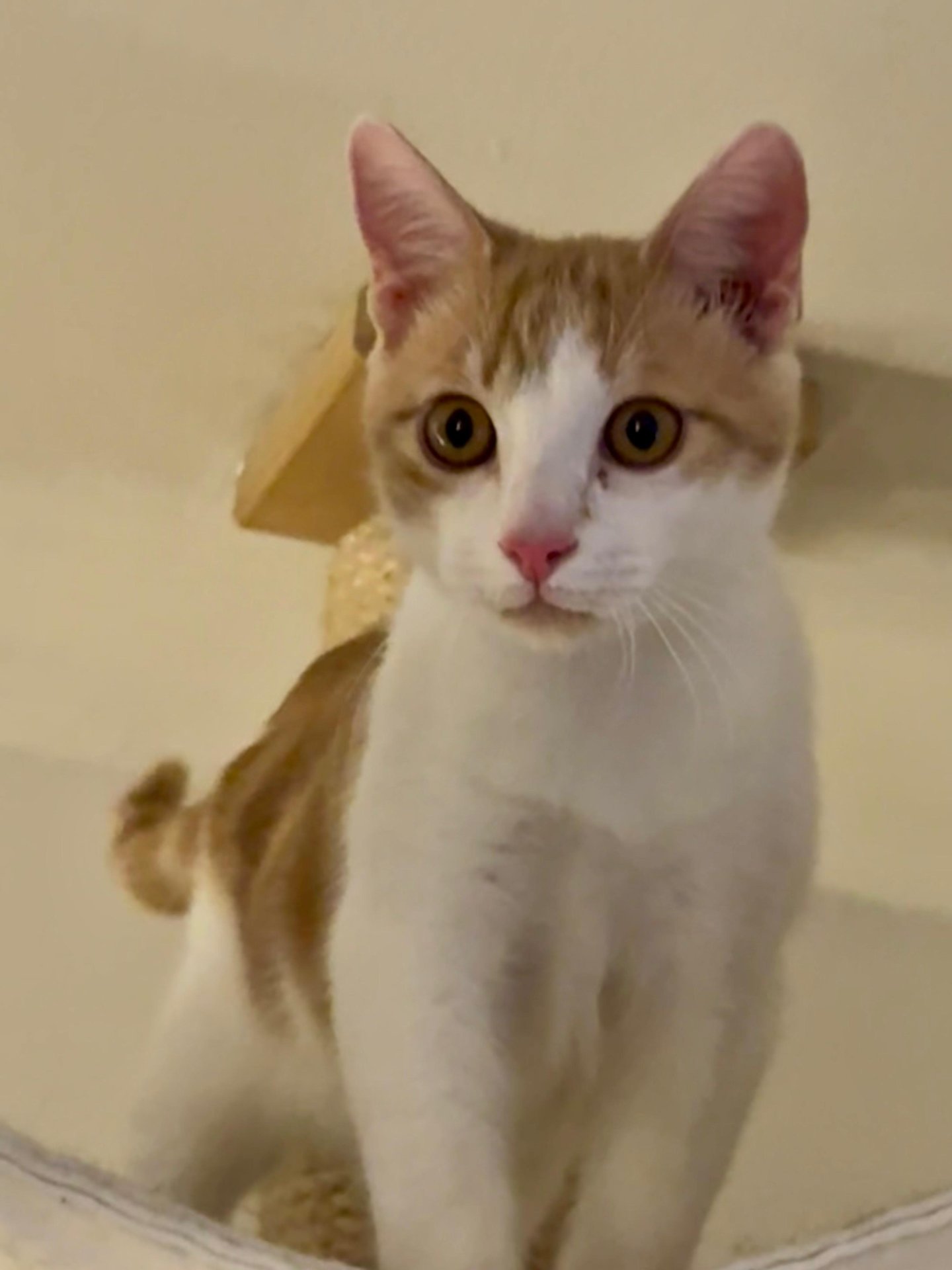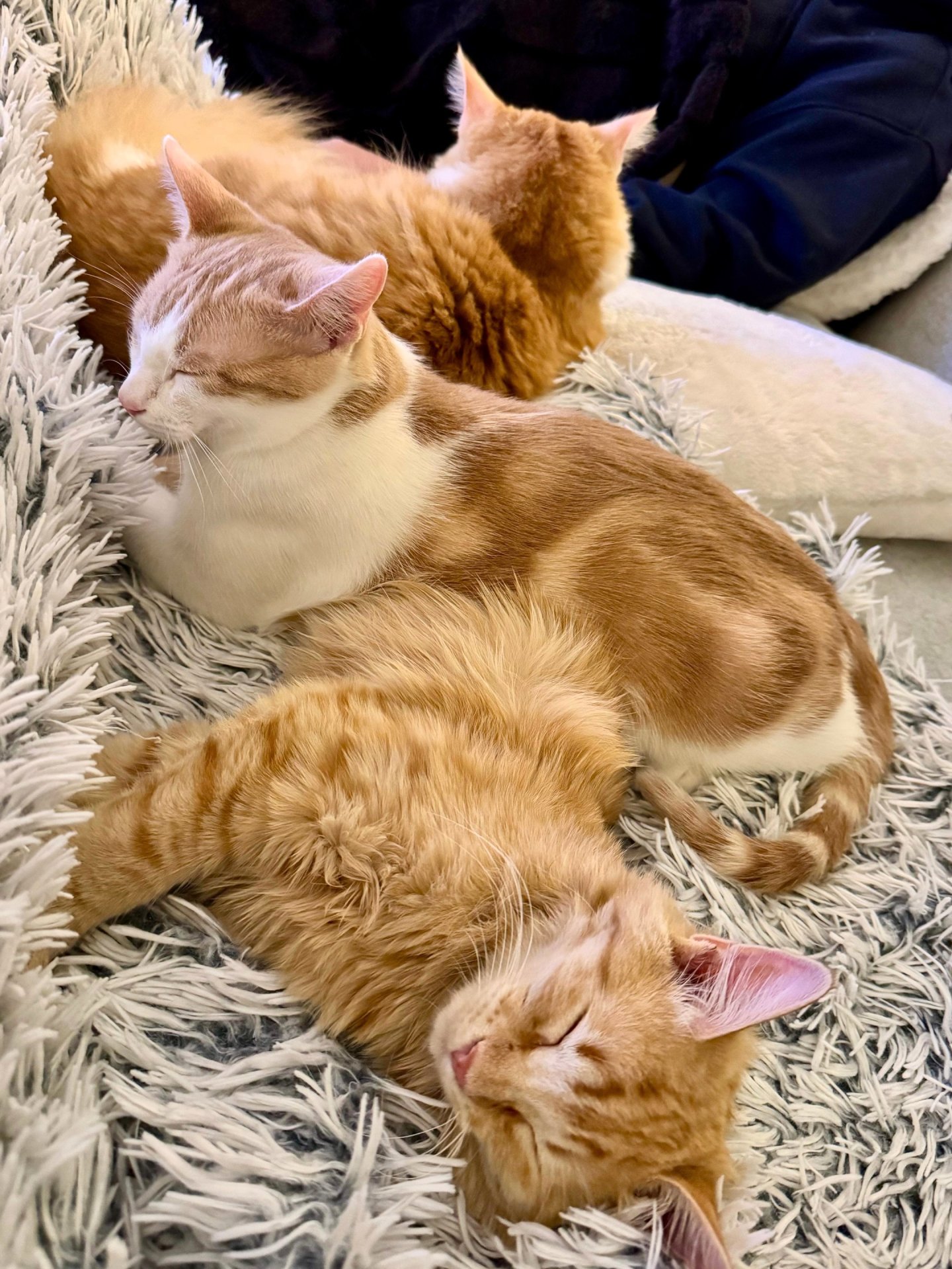 Hier ist Golden, ich bin anfangs etwas vorsichtiger als Clarence und Teddy und Besuch wird erst einmal beobachtet. Aber dann komme ich auch dazu, ich bin neugierig und voller Entdeckerdrang. Ich kann von uns 3 am lautesten schnurren und wenn ich auf den Kratzbaum flitze oder irgendwo runter springe, mache ich mich bemerkbar mit lustigen Quietschtönen. Ich lasse mich gerne auf dem Arm tragen und kuschele auch sehr gerne mit meinen Menschen. Morgens komme ich ins Bett und wecke die Menschen mit liebevollen Stupsern, damit die nicht den ganzen Tag verschlafen.