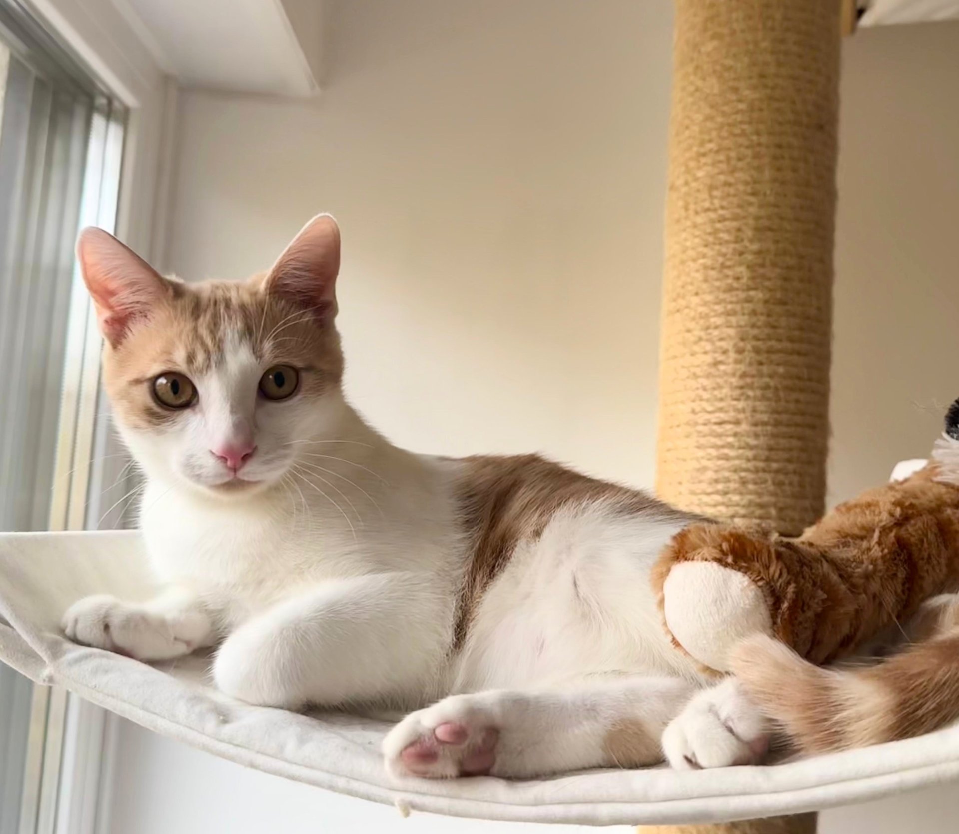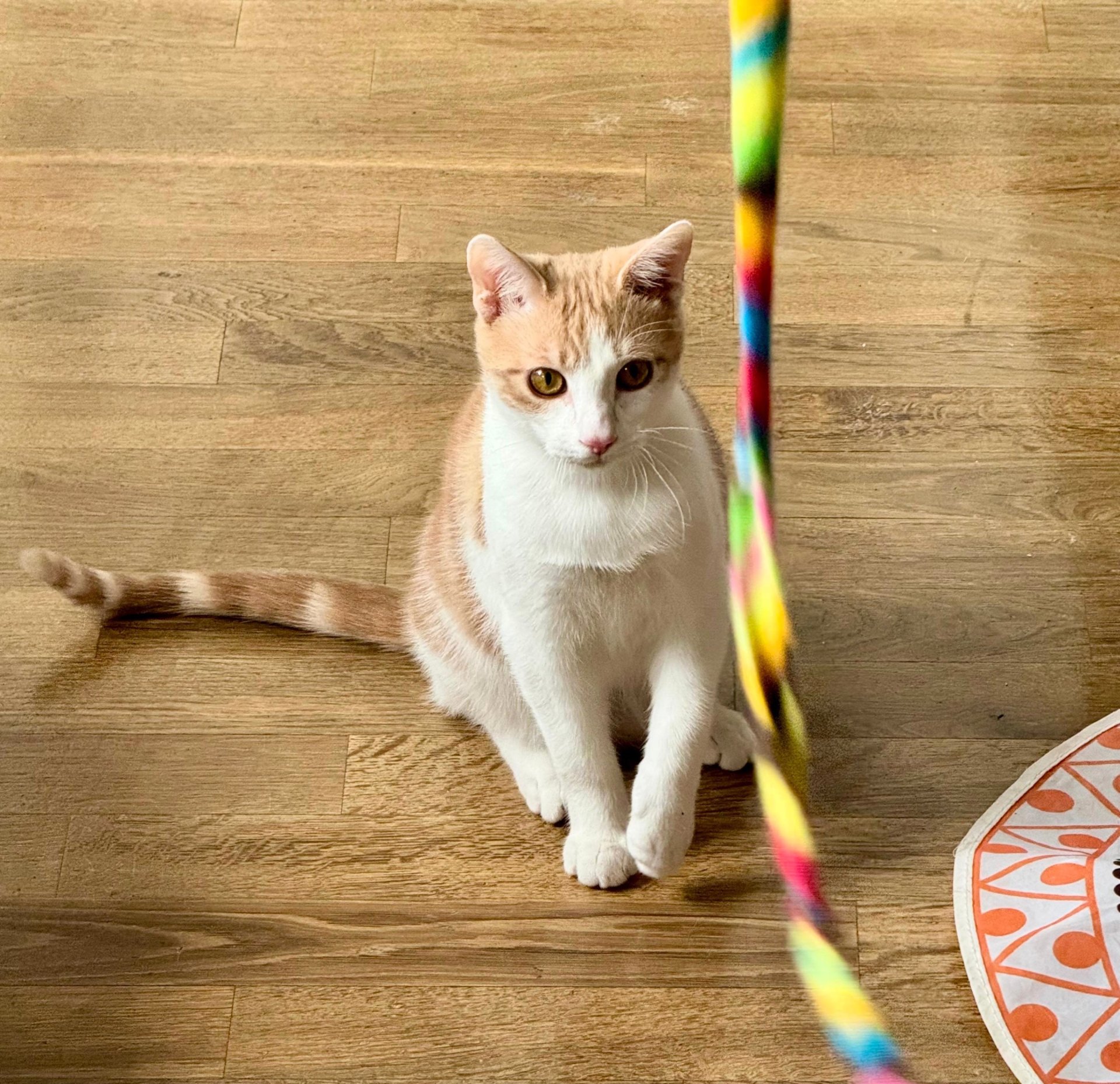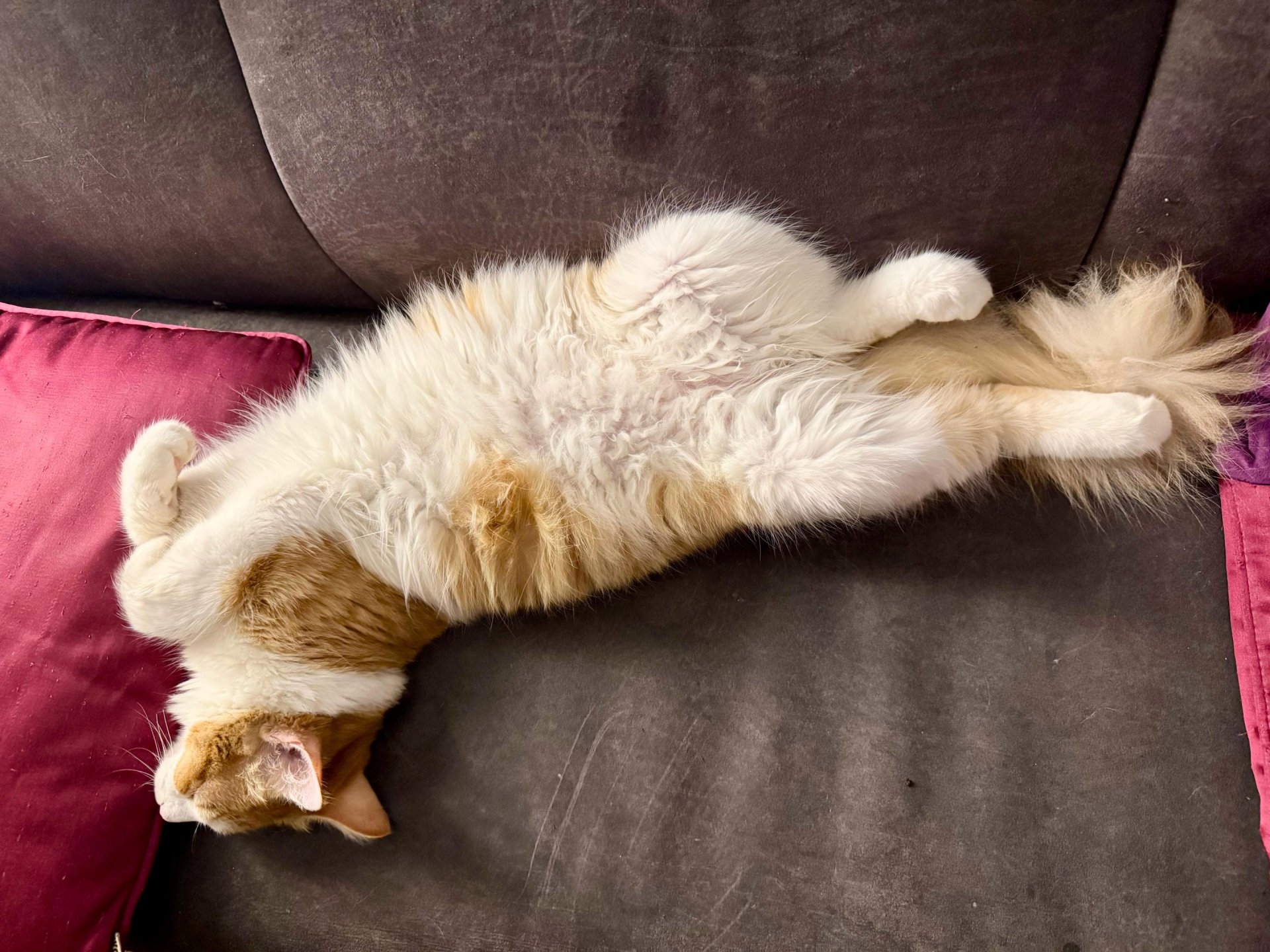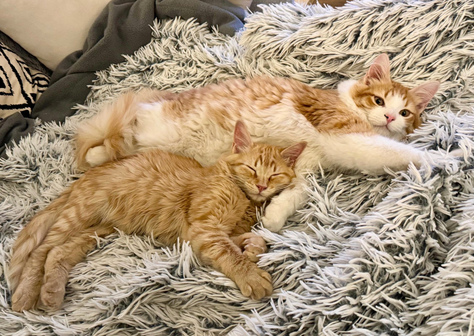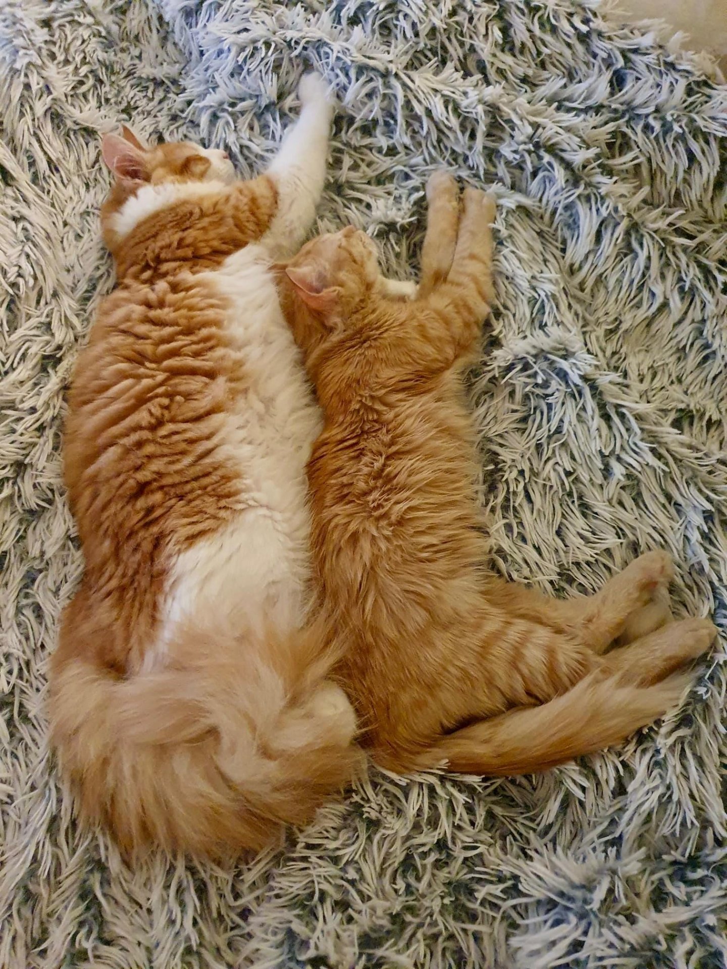 Hier ist Golden, ich bin anfangs etwas vorsichtiger als Clarence und Teddy und Besuch wird erst einmal beobachtet. Aber dann komme ich auch dazu, ich bin neugierig und voller Entdeckerdrang. Ich kann von uns 3 am lautesten schnurren und wenn ich auf den Kratzbaum flitze oder irgendwo runter springe, mache ich mich bemerkbar mit lustigen Quietschtönen. Ich lasse mich gerne auf dem Arm tragen und kuschele auch sehr gerne mit meinen Menschen. Morgens komme ich ins Bett und wecke die Menschen mit liebevollen Stupsern, damit die nicht den ganzen Tag verschlafen.