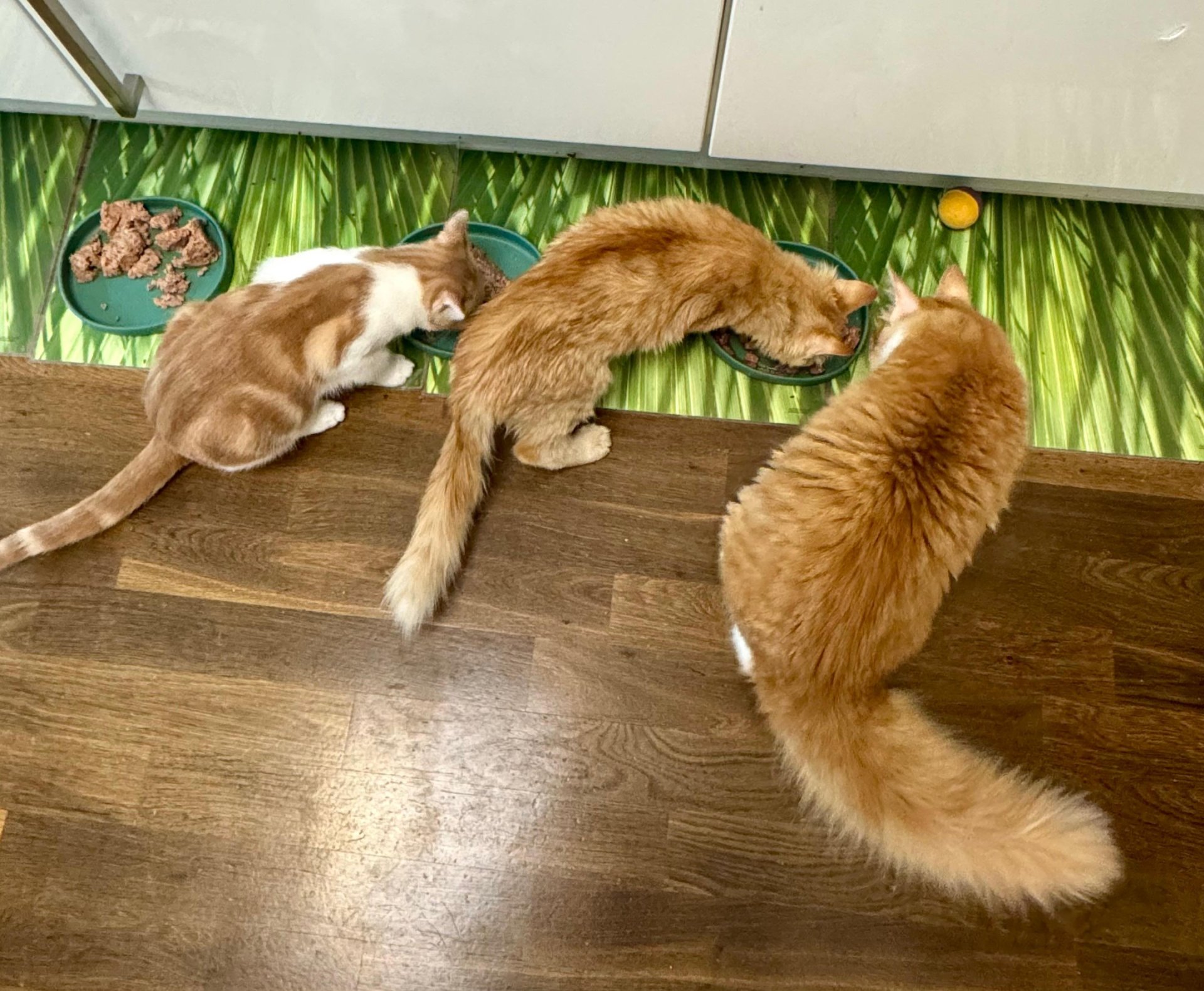 Hier sind wir, das wahrscheinlich süßeste Kater-Trio Münchens. Eigentlich müssten wir Sweetie, Sugar und Honey heißen, wir verzaubern euch in wenigen Minuten. Clarence (rot getigert, Langhaar), Golden (weiß-rot) und Teddy (weiß-roter Langhaar) haben sich auf der Pflegestelle in Spanien lieben gelernt. Ihr größter Wunsch wäre ein gemeinsames Zuhause zu dritt. Ungefähr so würden die drei sich vorstellen: